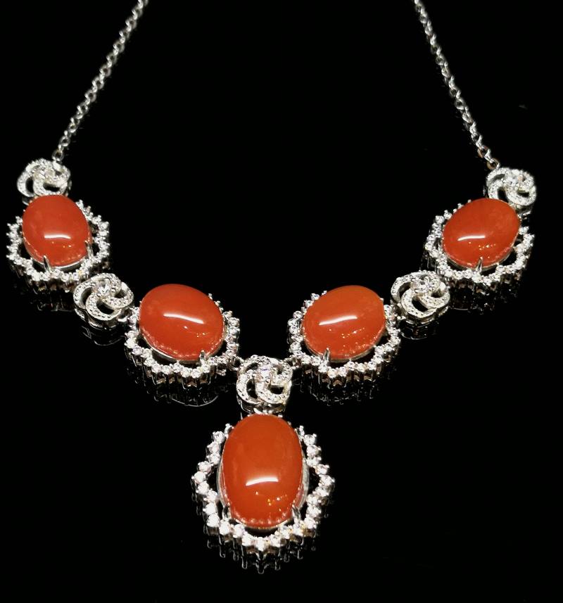 保山南红,项链,戒指,耳环,手链,五件套,无瑕疵,桃红色,