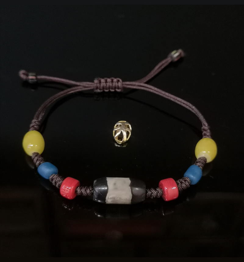 古珠乃通灵宝物,不但能够趋吉避凶,增强内气,提升顿悟能力,还可保佑持有者获得福报,功名,财富及一切的圆满,能调伏一切业障重罪而不受到束缚,并可消灾延寿,增长福慧,调和五行命气。这是一颗精品千年古珠,千年宽一线镶蚀黑白日月天珠,天珠旁系,年份爆好,黑白分明,品相完好,咬色分明,镶蚀漂亮,仔细观瞻,不免慨叹造物之精绝以及悠悠岁月的魔力,非常漂亮的古珠.