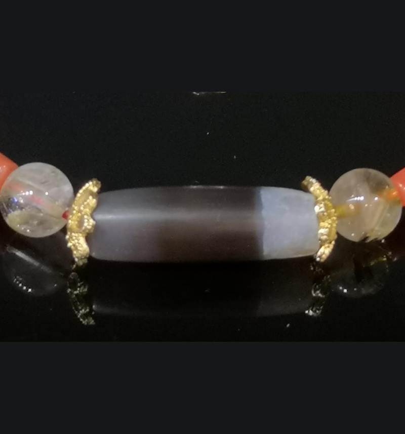 古珠乃通灵宝物,不但能够趋吉避凶,增强内气,提升顿悟能力,还可保佑持有者获得福报,功名,财富及一切的圆满,能调伏一切业障重罪而不受到束缚,并可消灾延寿,增长福慧,调和五行命气。这是一颗精品千年古珠,千年宽一线镶蚀黑白日月天珠,天珠旁系,年份爆好,黑白分明,品相完好,咬色分明,镶蚀漂亮,仔细观瞻,不免慨叹造物之精绝以及悠悠岁月的魔力,非常漂亮的古珠.